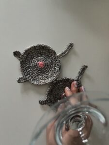 Ez a kézzel készült, puha fonalból horgolt alátét nemcsak megóvja az asztalodat a pohárnyomoktól, hanem garantáltan mosolyt is csal minden vendég arcára. A részletgazdag kidolgozás – a kis farokkal és tappancsfülekkel – egyszerre cuki és pimasz.