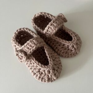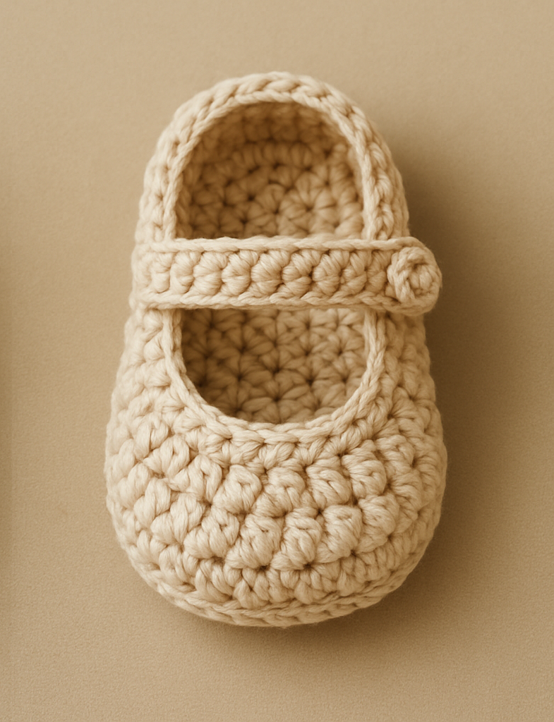 Minden egyes cipőcskét gondosan, minőségi pamutfonalból készítünk, egy aprócska horgolt gombbal zárva, hogy könnyedén fel- és levehető legyen – de biztosan a helyén maradjon, amikor kell.