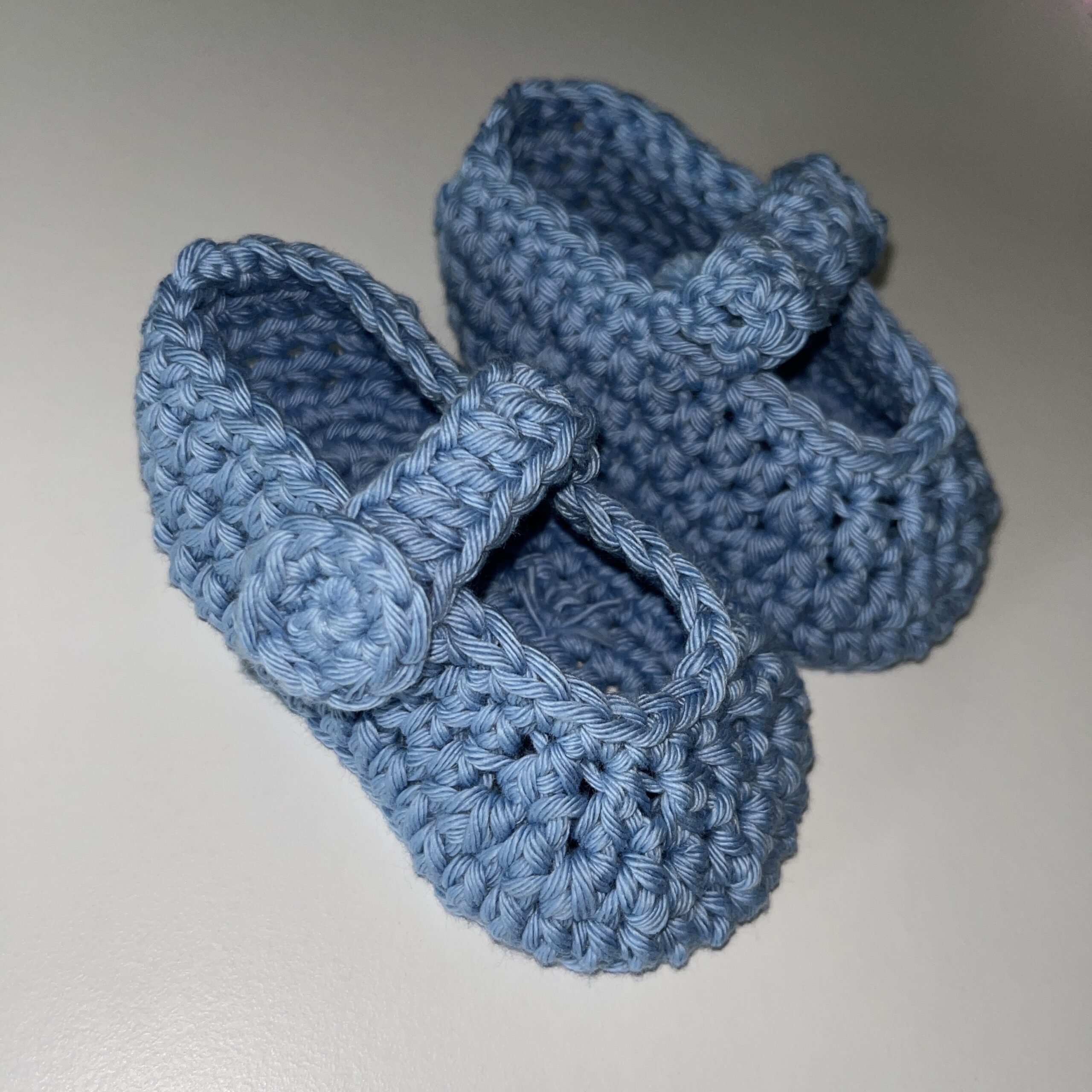 Minden egyes cipőcskét gondosan, minőségi pamutfonalból készítünk, egy aprócska horgolt gombbal zárva, hogy könnyedén fel- és levehető legyen – de biztosan a helyén maradjon, amikor kell.